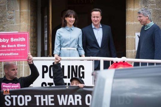 El primer ministro, David Cameron, acude a votar junto a su mujer