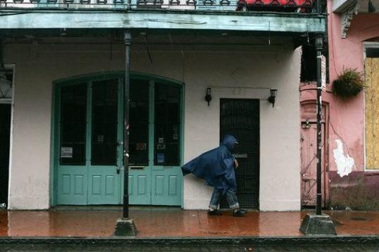 Un hombre camina por el Barrio Francés de Nueva Orleans, Louisiana, el 23 de septiembre de 2005. Fuertes lluvias y el viento comenzaron a azotar el estado al paso del huracán Rita por el Golfo de México, sólo tres semanas después de la deva...
