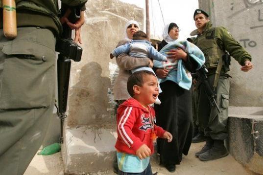 Un niño llora al lado de mujeres palestinas que discuten con soldados israelíes mientras tratan de cruzar desde Abu Dis a Jerusalén este el 26 de marzo de 2006. La polémica barrera que impide el acceso directo desde Cisjordania a Israel es l...