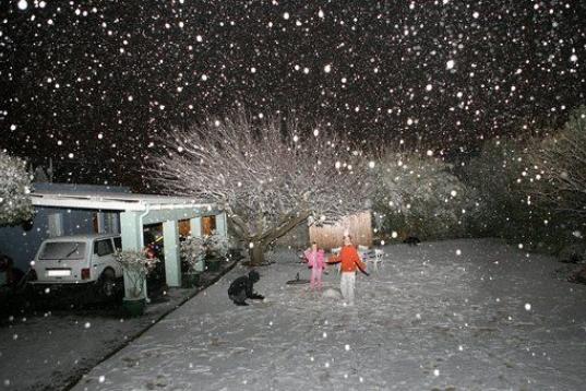 Los niños juegan en la nieve en Johannesburgo el 27 de junio de 2007. La inesperada nevada causó problemas en la ciudad y otras partes de Sudáfrica, obligando a cerrar varias carreteras. Una portavoz del servicio meteorológico nacional prono...