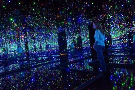 Una mujer contempla una instalación de la muestra Obsesión Infinita, de la artista japonesa Yayoi Kusama, de 84 años, en el centro cultural de Banco do Brasil en Río de Janeiro el 11 de octubre de 2011.