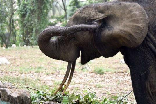 Un elefante se encuentra en su recinto en Abidjan Zoo. Durante la guerra civil de Costa de Marfil.