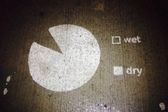 Su obra —mensajes positivos que disemina por la ciudad— sólo es visible cuando llueve. Como si de tinta invisible se tratara, el artista utiliza un material que repele el agua para estampar sus frases y dibujos sobre el pavimento.