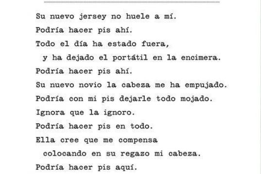 El libro, publicado en Estados Unidos en agosto de 2012 y que ahora llega a España de la mano de la editorial Lata de Sal, recoge 58 poemas escritos desde la perspectiva felina y siempre en clave de humor. "La poesía les deja decir lo que piensan de una manera clara y divertida que resulta agradable de leer. Además, ¿has intentado alguna vez sentar un gato mientras escribes una novela? Primero se ponen inquietos. Entonces de repente se quedan dormidos en el teclado y su baba cortocircuita la tecla shift. Finalmente se aburren y presionan letras y números hasta que entran accidentalmente en la cuenta del banco y la vacían", explica Marciuliano a El Huffington Post en tono irónico cuando se le pregunta por qué los gatos deberían ser poetas y no novelistas.