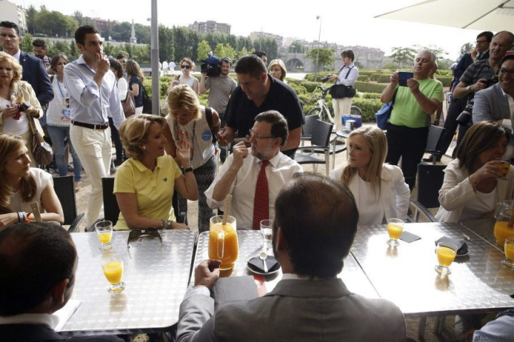 Tras tamaño esfuerzo, Rajoy y las candidatas madrileñas han recobrado fuerzas en una terraza del parque donde han aprovechado para charlar con responsables de asociaciones de ciclistas mientras se tomaban un refrigerio.