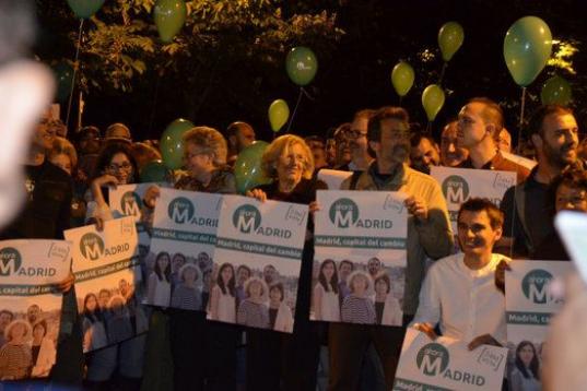 Manuela Carmena, candidata de Ahora Madrid a la Alcaldía de la capital, en el acto que su formación ha celebrado en la Cuesta de Moyano.