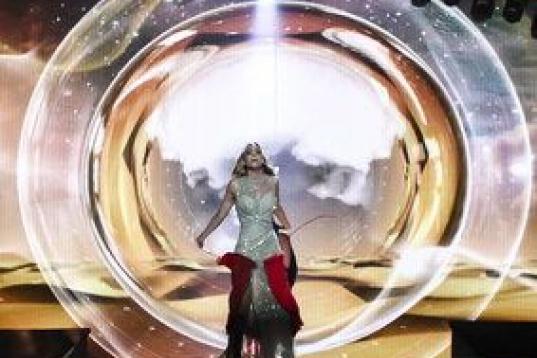 Edurne ha ensayado también ya con su decorado. Lo ha creado y montado la productora Gestmusic, muy curtida en escenarios televisivos, sobre una base de burbujas. Todo, en colores fríos, metalizados, que se van tornando más rojizos conforme avanza el tema. Es el juego contrario al de su vestido, para poder destacar la figura de la española.