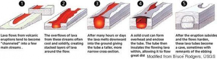 Cuando la erupción se calma, estos túneles se convierten en cuevas.