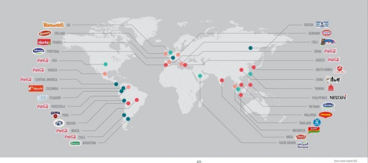 Coca-Cola es la marca más consumida en 8 de los 35 países analizados, entre ellos España. En este mapa puedes ver cuáles son las firmar más vendidas en cada país.