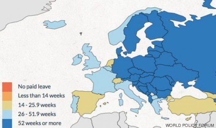 La duración del permiso de maternidad varía en función de cada Estado de la Unión Europea y se extiende desde 14 en un número reducido de países hasta 28 semanas en otros. En ciertas circunstancias, puede llegar a cincuenta y dos semanas, pero durante todo el periodo no se recibe la totalidad del sueldo. La duración del periodo obligatorio también cambia en función del país.