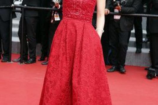La actriz Natalie Portman, que debuta como directora en Cannes, con vestido de Dior rojo.