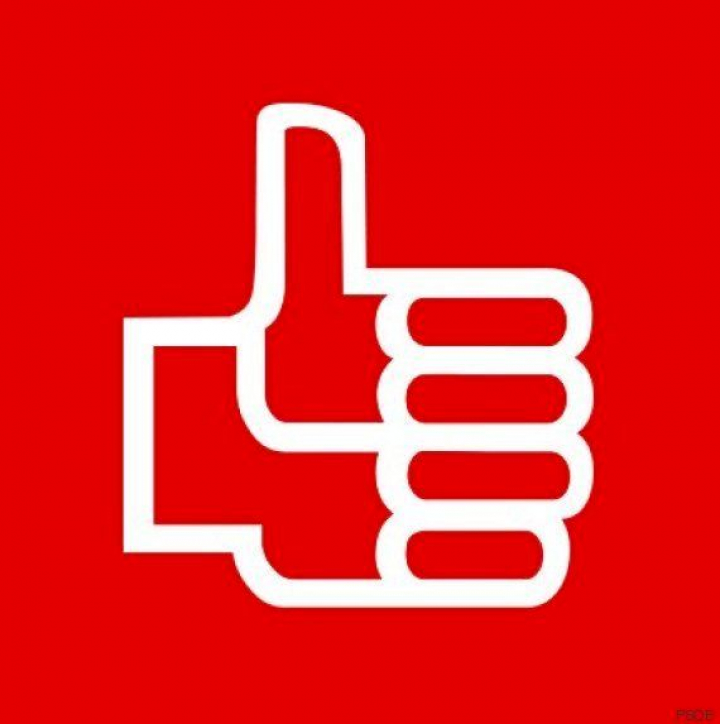 El PSOE ha cambiado su logo para esta recta final de campaña. El tradicional puño que sujeta una rosa por otro basado en la mano ha dado paso a un pulgar hacia arriba que recuerda al 'Me gusta' de Facebook.