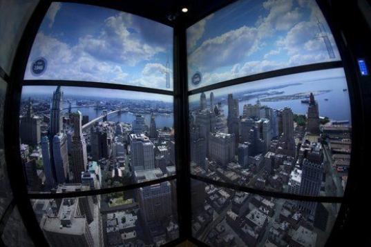 Otra de las grandes atracciones del lugar son los ascensores. Llevan a los visitantes hasta arriba en 47 segundos, mientras en las paredes se proyecta un vídeo que recrea la transformación de Manhattan y su escalada hacia el cielo.