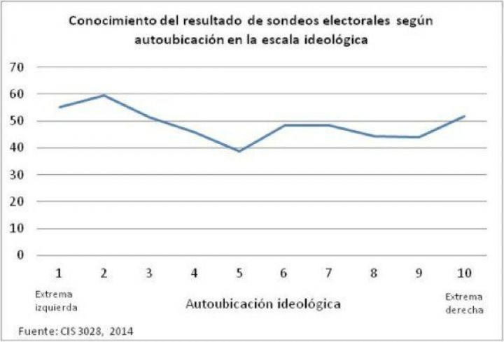 Los datos nos sugieren que un porcentaje amplio del electorado es conocedor de los resultados de encuestas. En 2011, en la última convocatoria de elecciones generales, el 65,7% de los encuestados por el CIS declaraba conocer los resultados de sondeos electorales, mientras en 2008 había sido el 61%. Para hacerse una idea de la relevancia de los sondeos como mecanismo de transmisión de información política durante el período electoral, conviene señalar que en 2011 solo un 46% de los españoles señalaba que había visto un espacio de propaganda electoral, y un 33% había visto un debate entre candidatos.