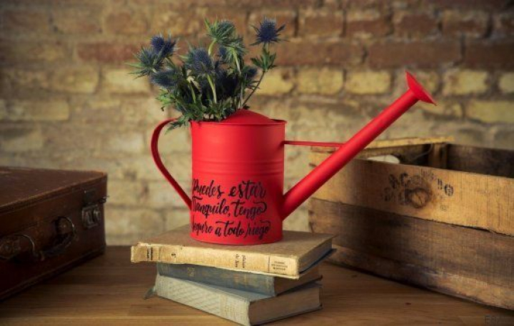 El estudio Vasito de Leche ha creado una colección de regaderas que, además de prácticas, pueden formar parte de la decoración de la casa. Están disponibles en cinco colores y están personalizadas a mano con frases optimistas, acordes con la llegada del Sol a nuestras vidas. Solo se pueden encontrar en su tienda de eBay.