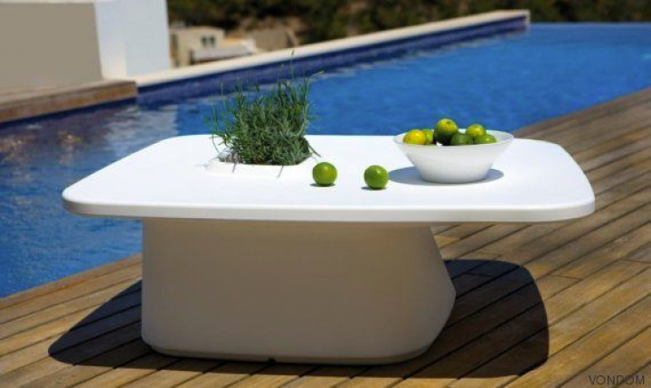 El valenciano Javier Mariscal, premio Nacional de Diseño y el padre del mítico Cobi, ha ideado para la firma Vondom una colección de mobiliario para el exterior llamada Moma. En ella conjuga materiales ecológicos y formas novedosas en piezas versátiles que unen una cubierta, un macetero y un novedoso sistema de riego en una misma mesa.