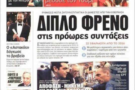 Bajo el título "Shock y pavor para el partido popular de Rajoy en las elecciones municipales", el rotativo centrista griego To Vima habla de un "giro a la izquierda". "El partido de Rajoy se dirige hacia un desplome y pierde Madrid en la elecciones municipales" es el título del diario de centro Ta Nea.