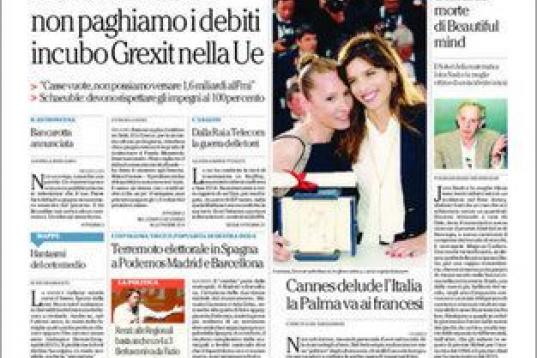 La Stampa, en su edición en papel, titula "Madrid y Barcelona, revolución de Podemos". "Terremoto electoral en España. Podemos en Madrid y en Barcelona" es el titular elegido por La Repubblica, que asegura que "el cambio parte de las metrópolis".