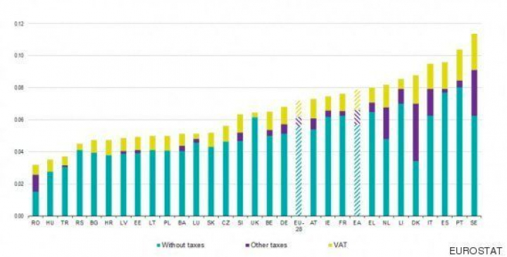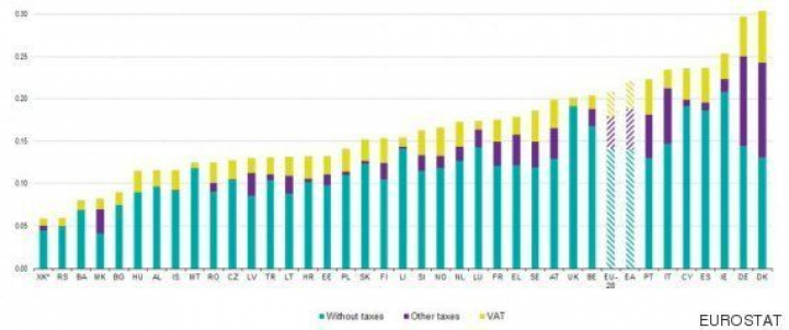 En cuanto a los precios de la electricidad, en la UE éstos han aumentado desde 2008 en más de un 30%, según Eurostat. Entre los Estados miembros, los precios variaron desde los 9 euros por cada 100 kilovatios por hora en Bulgaria hasta más de 30 euros en Dinamarca.