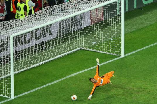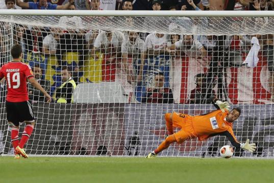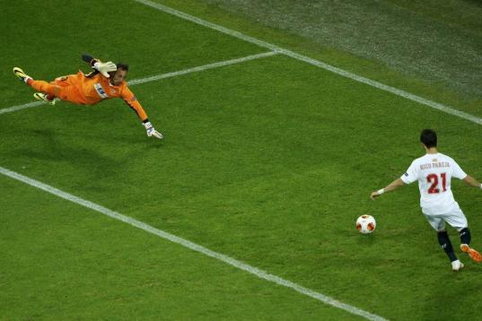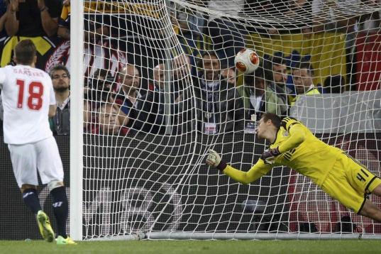 Los ucranianos se adelantaron a los seis minutos con gol de cabeza de Kalinic en un mal reajuste defensivo del Sevilla. Los de Emery, que pidió tranquilidad tras el tanto, se vieron obligados a remar a contracorriente nada más comenzar y el Dnipro demostraba por qué se había plantado en la final.