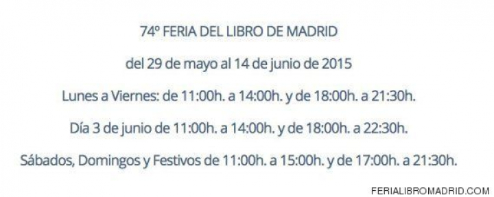 No merece la pena madrugar mucho: la Feria abre a las 11 y cierra a las 21.30, excepto el miércoles 3, víspera de festivo en Madrid (el 4 se celebra el Corpus Christi), que se alarga hasta las 22.30. También hay que tener cuidado con los descansos de mediodía, porque de lunes a viernes las casetas cierran de dos a seis de la tarde. Sábados, domingos y festivos no habrá posibilidad de ver libros de tres a cinco de la tarde.