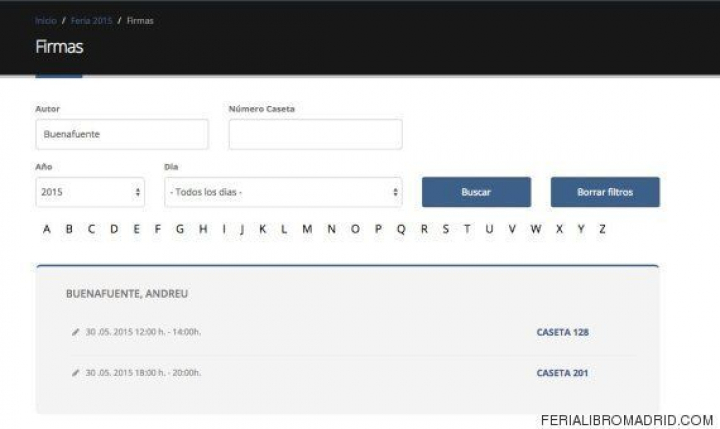 Aunque cuidado, porque la web todavía no está 100% actualizada y puede que busques autores que no aparezcan pero luego sí que firmen. Conviene confirmarlo el mismo día.