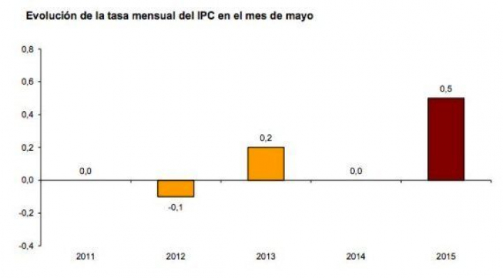 En tasa mensual, los precios han subido el 0,5% durante mayo, que contrasta con la estabilidad que mostró en el mismo mes del año anterior (0%).