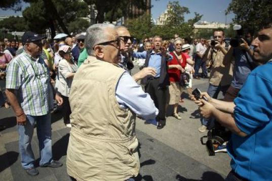 Según ha comprobado Efe, un pequeño grupo de manifestantes ha zarandeado a un cámara de la Sexta y ha roto la cámara de un redactor, Pablo Machuca, de 'El Huffington Post', por lo que la Policía, que ha identificado a varias personas, se ha interpuesto entre los periodistas y los concentrados, que han continuado con sus insultos.