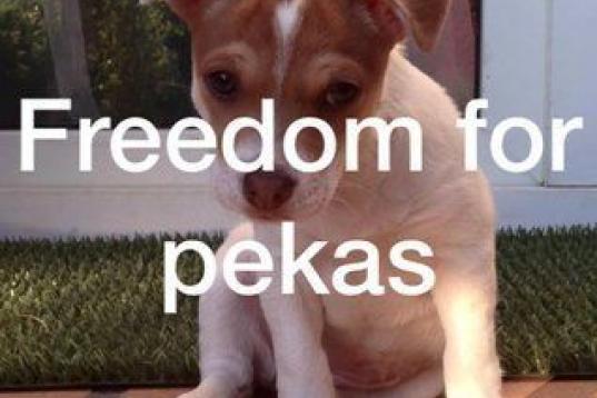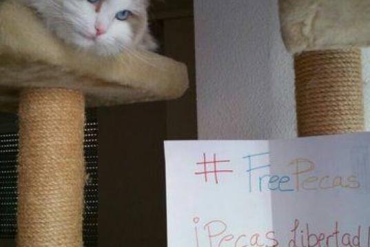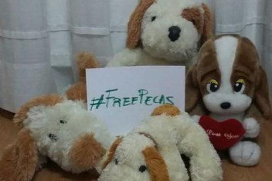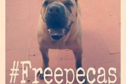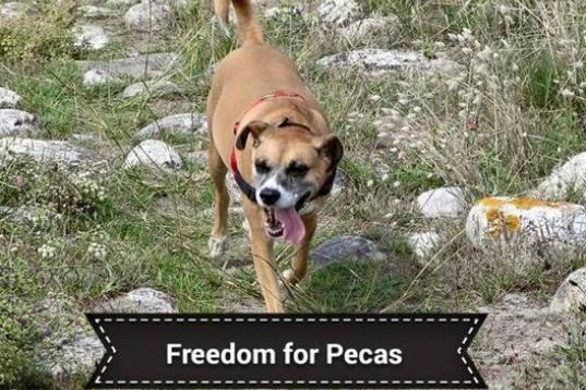 La cita es el sábado 13 de junio, a las seis de la tarde. El lugar, la Plaza del 2 de Mayo, en el barrio de Malasaña de Madrid. El lema de la concentración: "¡Corre, Pecas, corre! Escapa, pequeño amigo". Y lo que se pretende es eso: que Pecas, el perro Pecas, se libere de su dueña, que no es otra que Esperanza Aguirre, candidata del PP a la Alcaldía de Madrid.