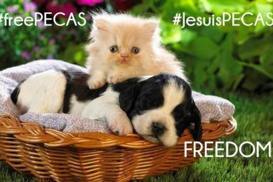 La extravagante convocatoria nace de una foto, tomada el día de las elecciones locales, en la que se veía a Aguirre arrastrando con la correa al animal, abrumado por los focos de tanto periodista que se había desplazado al colegio electoral. Tras ello, y el uso del perro en campaña para hacer imagen, se ha creado una página en Facebook para defender a Pecas.