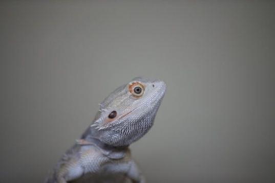 Un dragón barbudo mira hacia arriba en su tanque en la Real Sociedad para la Prevención de la Crueldad contra los Animales (RSPCA), un centro de rescate de reptiles de Brighton, Inglaterra.