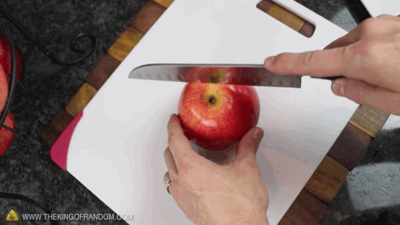 Uno de los errores que has estado cometiendo afecta directamente a las manzanas. Probablemente cortes esta fruta empezando por la parte de arriba, donde está el rabo. Pero todo eso está mal. El YouTuber Grant Thompson, The King of Random, lo explica en el vídeo de arriba. Deberías empezar justo al revés: dale la vuelta a la manzana y haz el primer corte a unos centímetros del corazón.