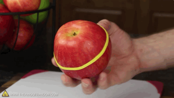 Y después agarra una cinta de goma, envuelve con ella la manzana y ya tienes lista la merienda portátil perfecta. De esta forma será mucho más fácil de comer y, ya que la carne de la fruta permanece cubierta, será más fácil que no se oxide. Cuando vayas a comerla, estará como recién cortada.