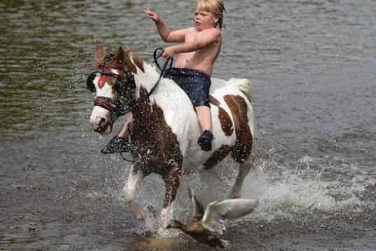 Un joven gitano romaní atraviesa a caballo el río Eden durante la feria del caballo de Appleby, en Reino Unido. Cada año, miles de gitanos llegados de toda Europa se dan cita en este mercado equino para reunirse con viejos amigos y vender sus...