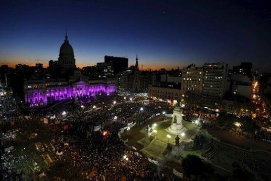 Manifestantes se reúnen a las puertas del Congreso para pedir más políticas que prevengan los femicidios en Buenos Aires, Argentina.