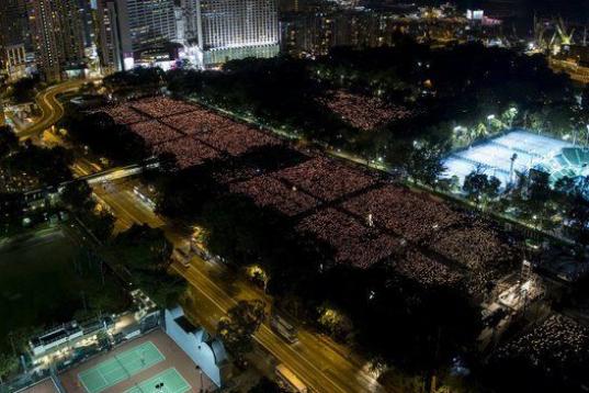 Miles de personas acuden a la vigilia en el parque Victoria de Hong Kong, China, para recordar a las víctimas de la matanza de Tiananmen, en el 26 aniversario.