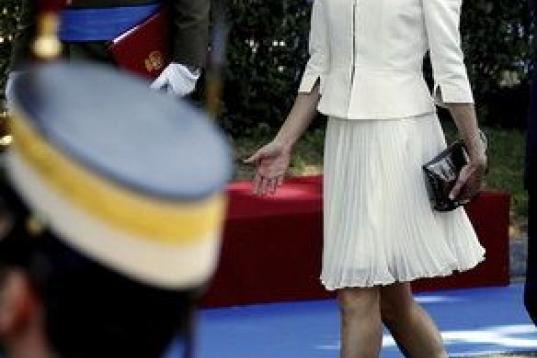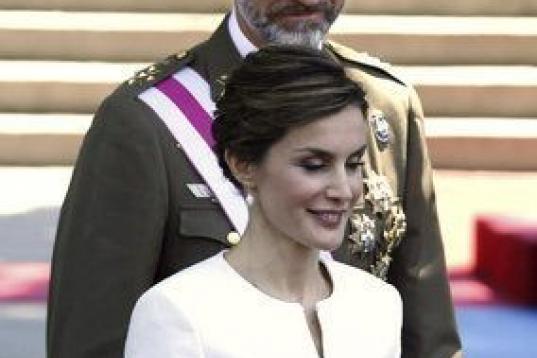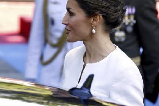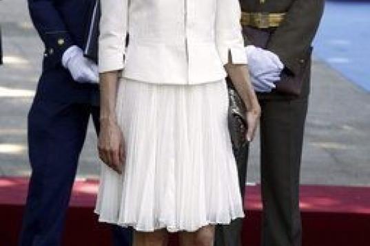 Por su parte, doña Letizia apareció con un vestido de dos piezas en color blanco roto.