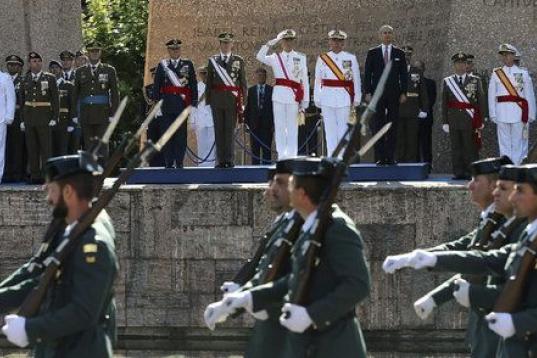 Junto a los Reyes, han asistido los ministros de Defensa, Pedro Morenés, y de Interior, Jorge Fernández Díaz; el jefe de Estado Mayor de la Defensa (Jemad), almirante general Fernando García Sánchez, y los jefes de Estado del Ejército (Jeme), general Jaime Domínguez Buj; del Aire (Jema), general Francisco Javier García Arnaiz, y de la Armada (Ajema), almirante Jaime Muñoz Delgado.
