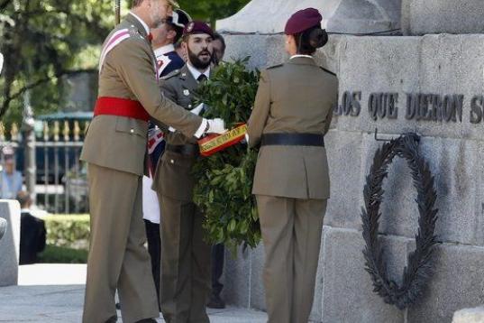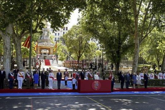 Se trata de la primera vez que don Felipe, que vestía uniforme del Ejército de Tierra, preside el acto central de la principal fiesta militar como capitán general de los ejércitos, en su calidad de jefe supremo de las Fuerzas Armadas.
