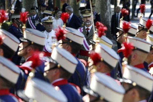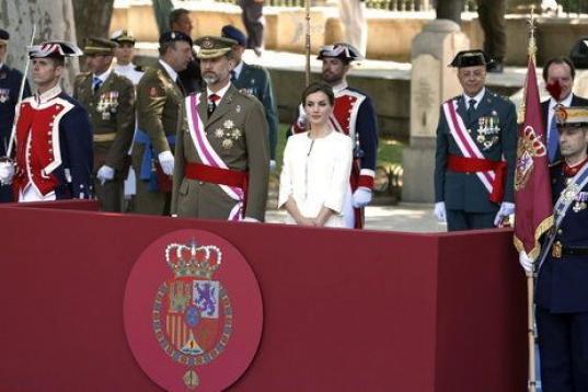 Felipe VI y Letizia se han estrenado hoy como Reyes en el acto central del Día de las Fuerzas Armadas en Madrid, donde han sido acogidos con aplausos y gritos de "viva España" y "viva la Corona" de cientos de personas que han presenciado la celebración.