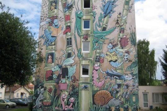 Sin embargo, el territorio al que los personajes de cómic saltan desde las páginas de papel es a las paredes. Numerosos murales de grandes dimensiones salpican tanto el centro de la ciudad como los barrios periféricos. Son trampantojos diseñados por historietistas de prestigio como Yslaire, Max Cabanes, Julliard o Florence Cestac —ellos crean el dibujo y unos operarios son los encargados de plasmarlos en los muros—. Humor, fantasía, imaginación y color sorprenden al visitante y animan el día a día de los vecinos.
