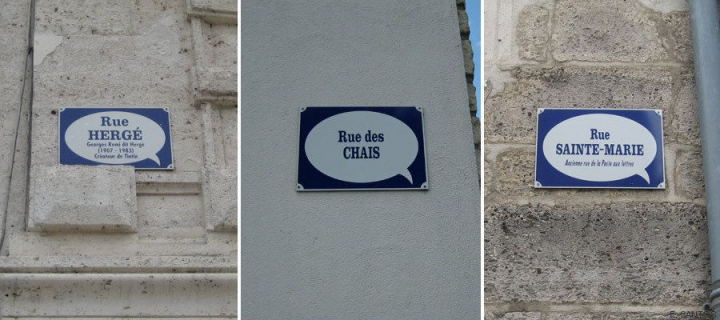 Así lo recuerdan en todo momento las placas con el nombre de las calles, ya que tienen forma de bocadillo de cómic. Además, los apellidos de viñetistas famosos, como Hergé —el creador de Tintín— o Goscinny —uno de los autores de las aventuras de Astérix y Obélix—, dan nombre a algunas de las principales calles del centro.