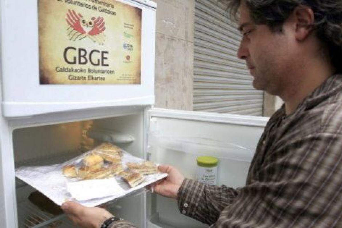 El frigorífico fue puesto en marcha por la Asociación de Voluntarios de Galdakao el pasado 30 de abril, con el objetivo de evitar que la comida sobrante o a punto de caducar que cada día generan tantos y tantos restaurantes y hogares tuviera otro destino distinto al vertedero.