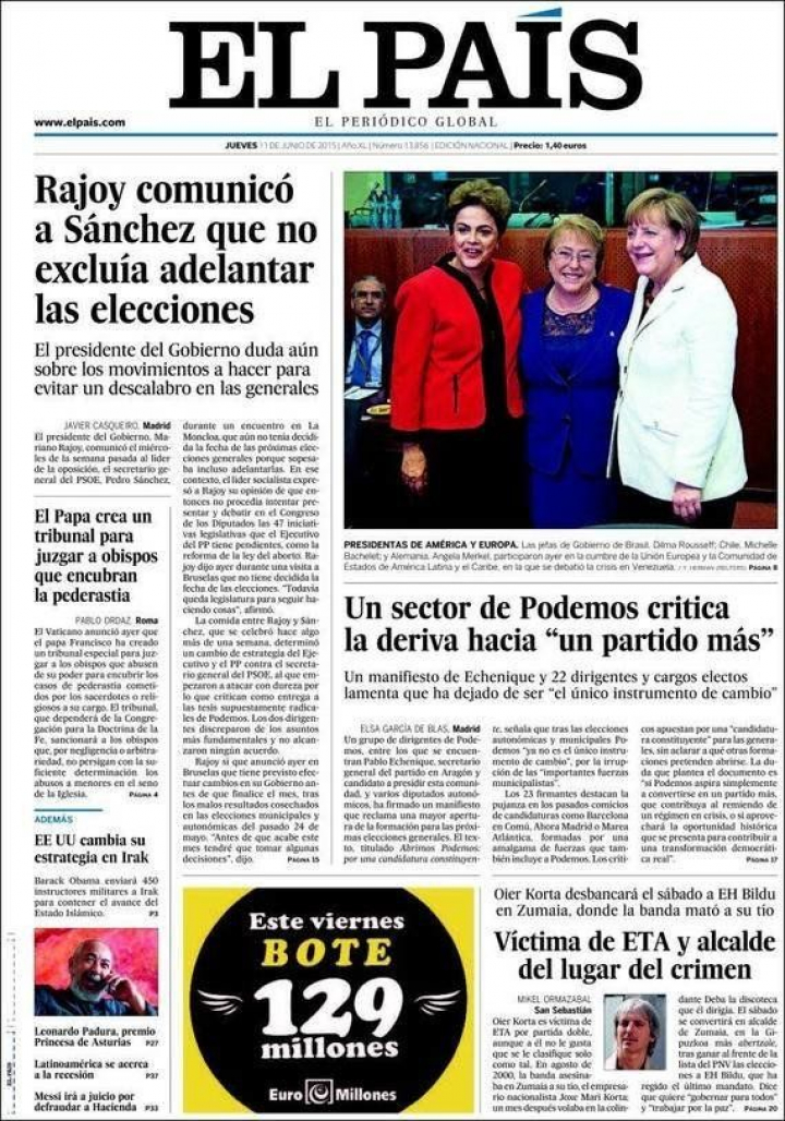 El partido de Pablo Iglesias, como cuentan la SER y El País en primera, se ve agitado por un sector encabezado por el otro Pablo, Echenique, que "critica la deriva hacia 'un partido más" y propone integrarse en listas de unidad de cara a las generales porque Podemos ha dejado de ser "el único instrumento de cambio".