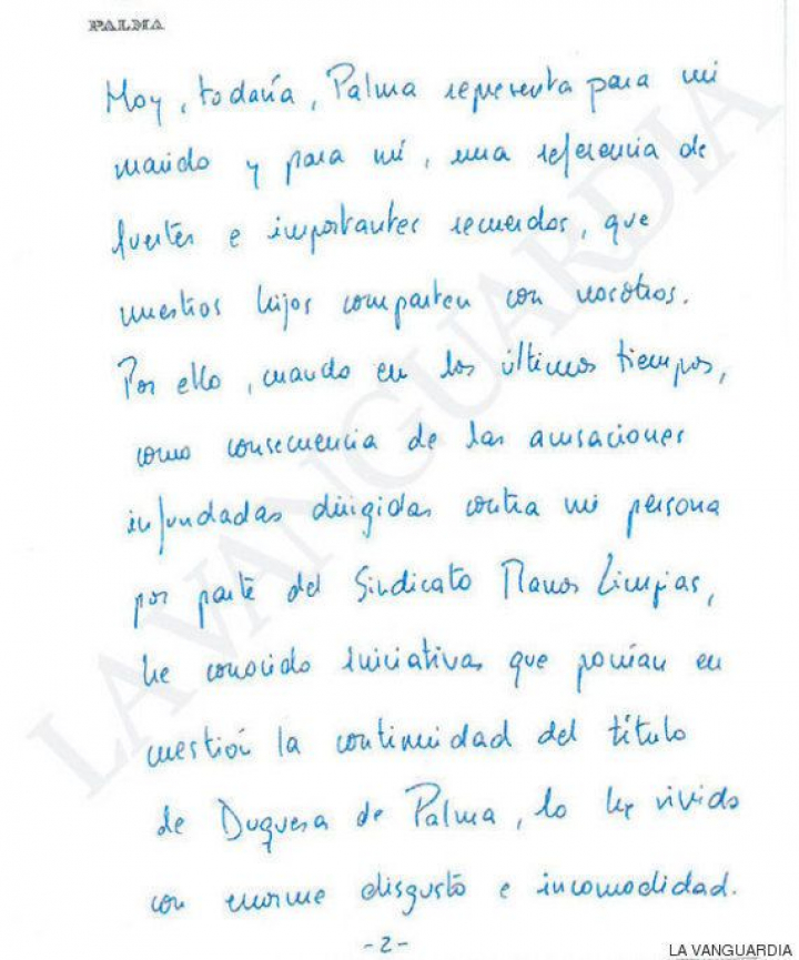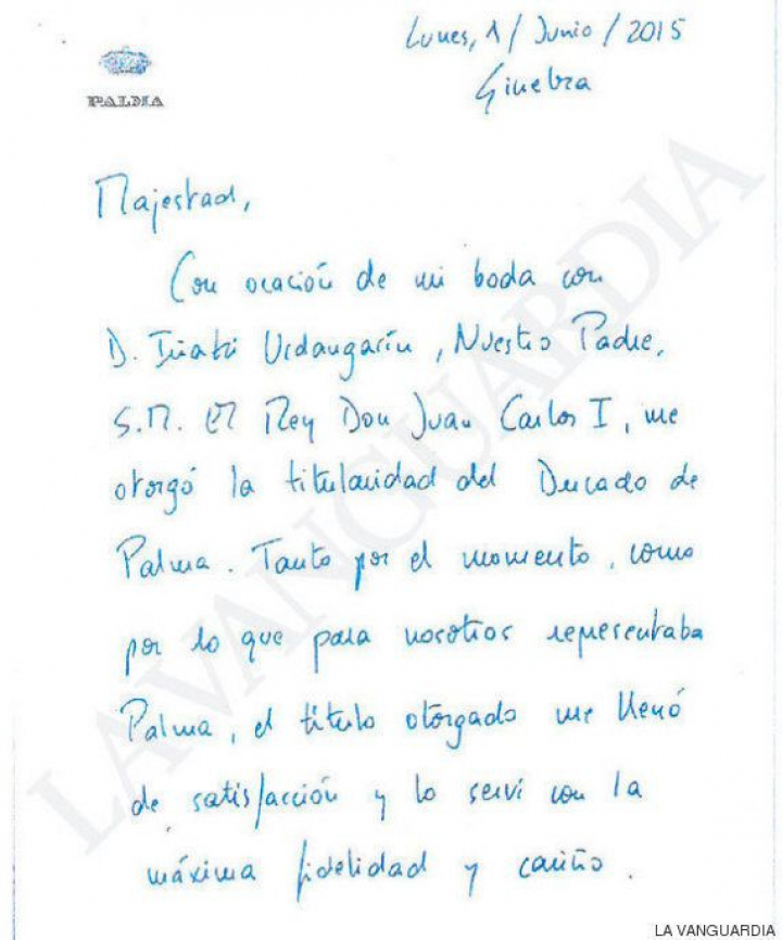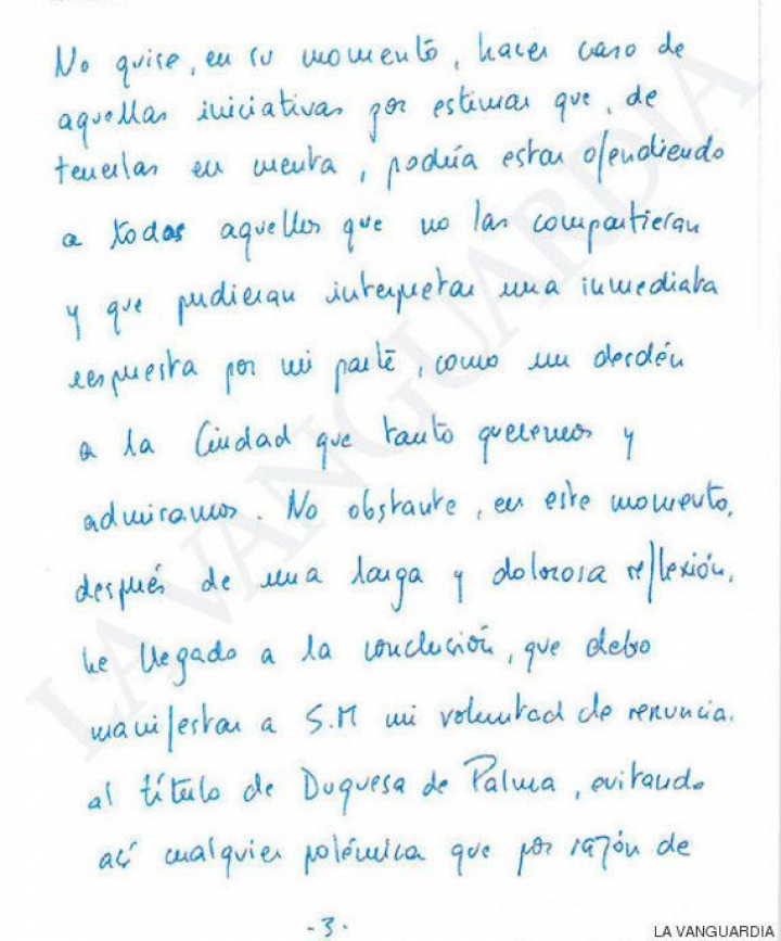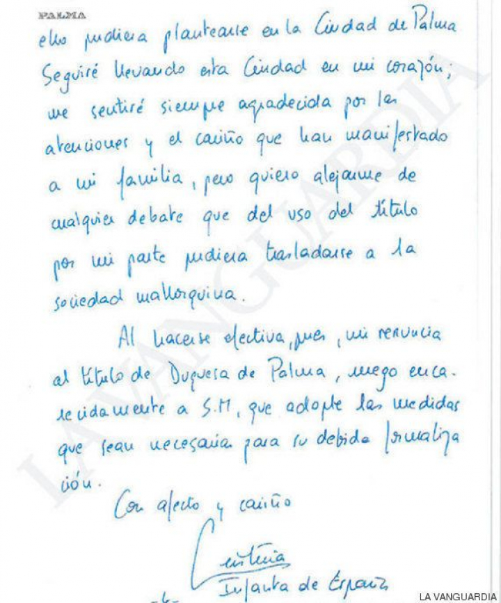 El diario La Vanguardiaha tenido acceso a la carta manuscrita que la infanta dirigió al rey Felipe: