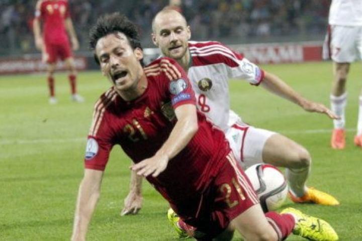 Parecía que la superioridad ibérica no se iba a transformar en gol pero, antes del descanso y tras una gran acción personal de Morata, España forzó una falta lateral peligrosa. Cesc botó la falta al segundo palo y Gorbunov erró en la salida permitiendo que el esférico llegase a pies de David Silva. El canario controló y disparó con potencia superando a los defensores que esperaban salvar el tanto bajo palos. Con el 0-1 se llegó al descanso.