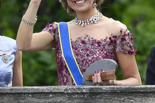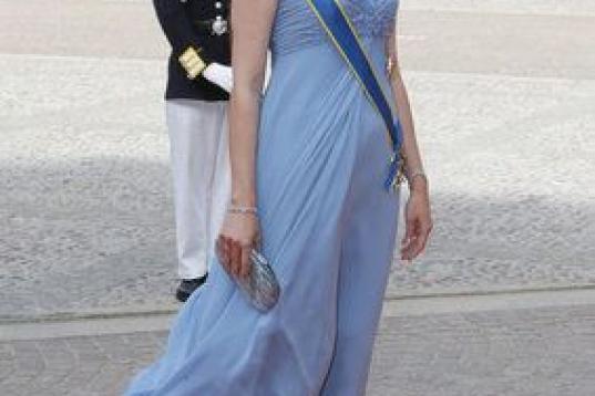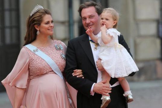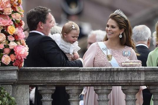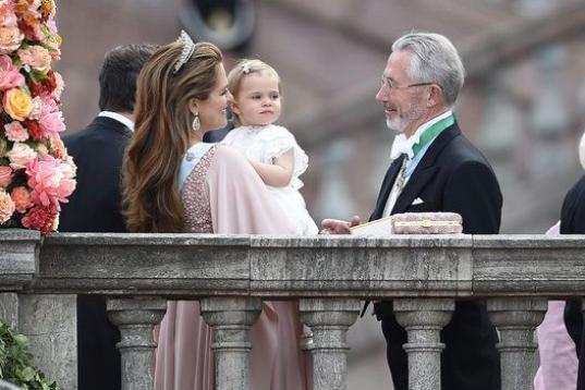 La princesa Estela, hija de la heredera Victoria, fue una de las cuatro niñas que llevó las arras, mientras que la otra nieta de los reyes de Suecia, la princesa Leonor, de apenas un año, presenció la ceremonia en brazos de su padre, Christopher O'Neill, sentado junto a la madre, la princesa Magdalena, que en unos días sale de cuentas.