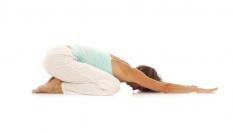 La postura del niño es una pose de sometimiento. Comenzando desde una posición arrodillada, con las puntas de los pies tocándose y las rodillas a la altura de los hombros, baja la cintura hasta los tobillos mientras extiendes los brazos hacia adelante, sobre el suelo, y bajas la frente también hacia el suelo. Cierra los ojos y reposa la frente en el suelo. Respira de la manera que te resulte más cómoda.