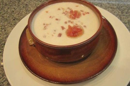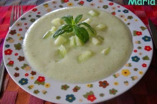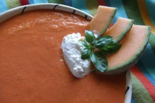 No, no es una sopa de sandía ni un error: es una sopa de melón cantalupo, que es naranja por dentro. Un plato distinto.