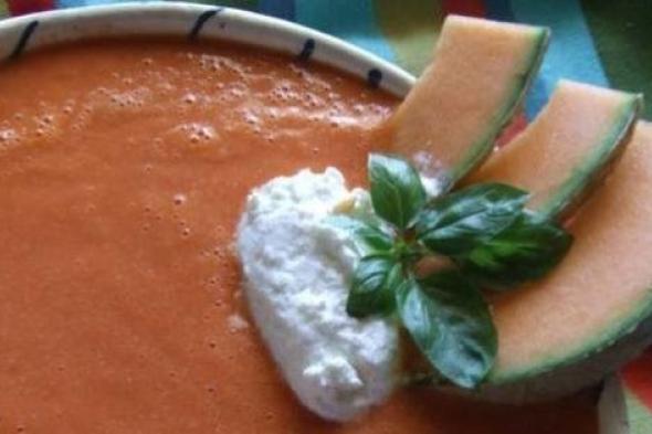 No, no es una sopa de sandía ni un error: es una sopa de melón cantalupo, que es naranja por dentro. Un plato distinto.